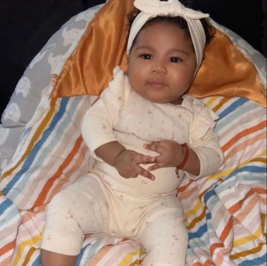 Introducing our brand new swaddle blankie! still lined with satin to protect your babies little locs but we are adding cotton lining to the rest of the blankie to provide an extra layer of warmth.
